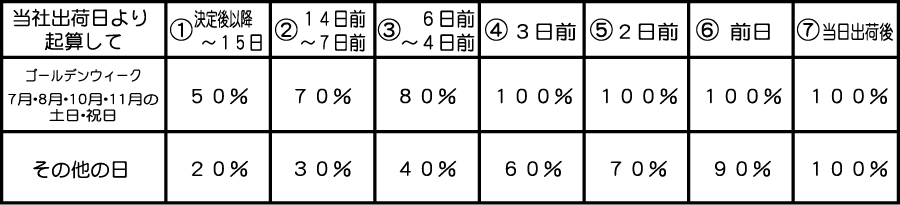 - レンタル品・現場施工は、決定後のキャンセルはキャンセル料金がかかります。(当日の悪天候含む) キャンセル料金表
